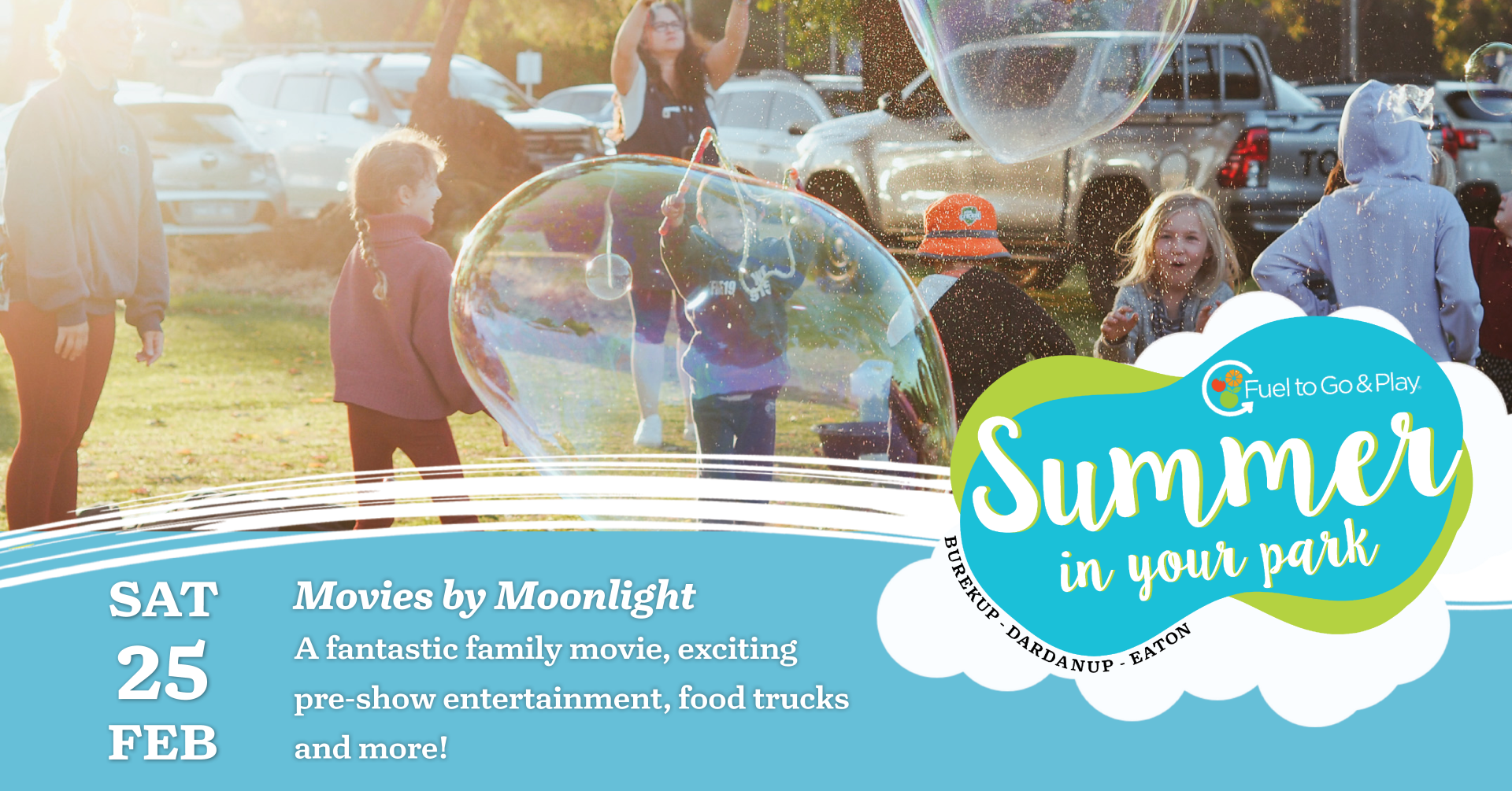 Movies by Moonlight is part of the Shire of Dardanup’s Fuel to Go & Play Summer In Your Park series of free, family-friendly events running from December to January.