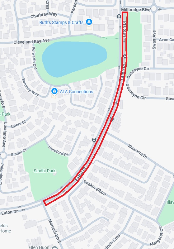 - Morning: Millbridge Boulevard to Monash Boulevard.