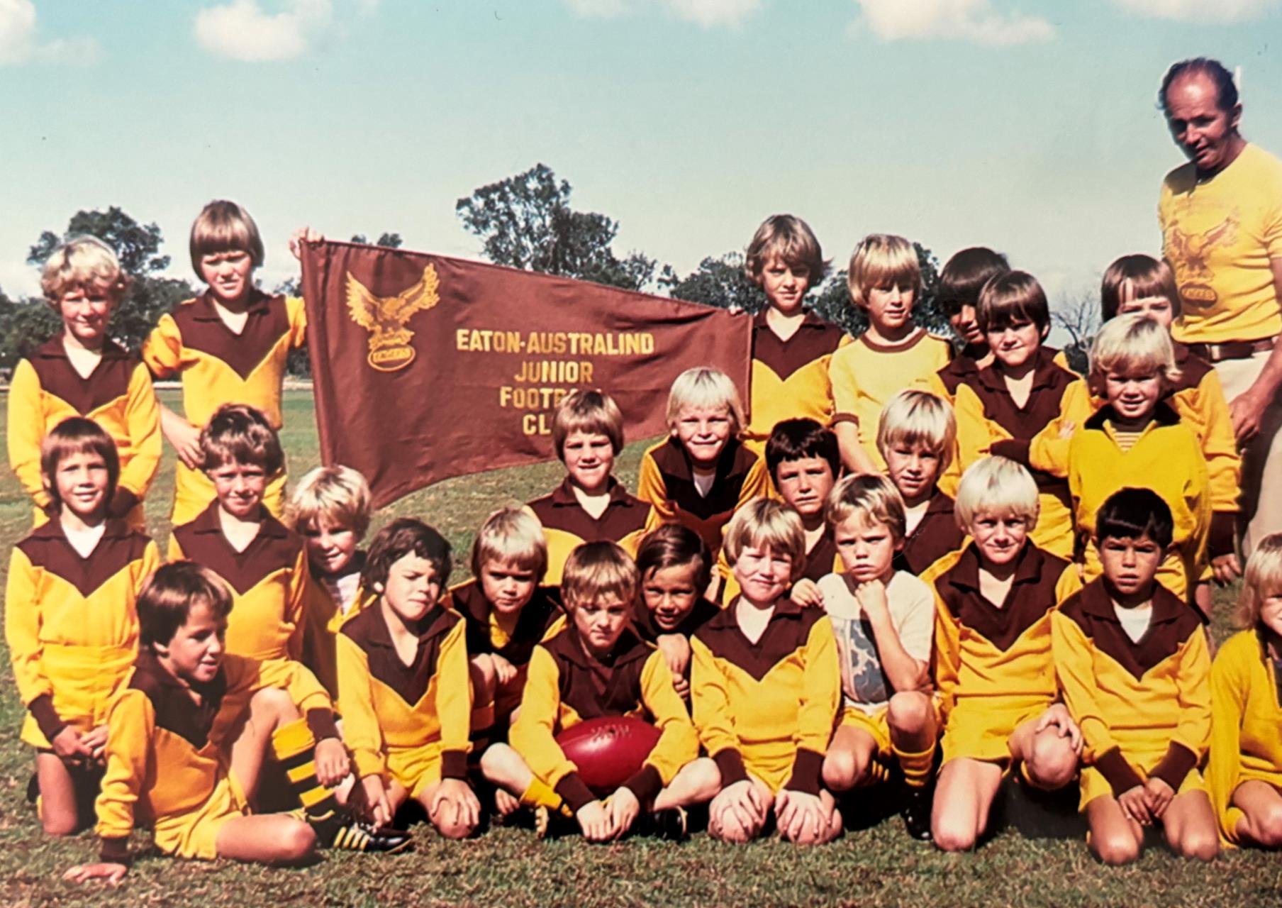 Reg Fishwick with the Eaton Australian Junior Football Club players in the 1970s.