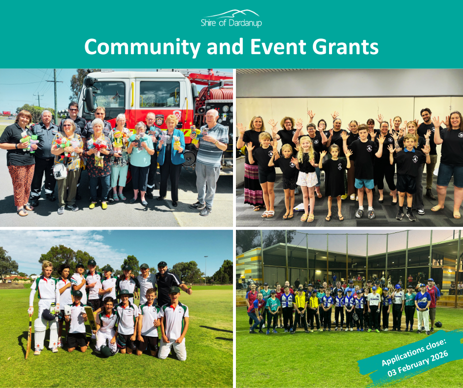 Are you part of a not-for-profit community group or sporting club with an exciting project idea but need financial assistance to bring it to life? The Shire of Dardanup's Community & Event Grants are here to help!