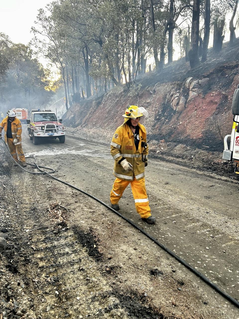 Photos: Thanks to Shire of Dardanup Cr Tony Jenour for sharing these photos of local volunteer fire fighters who helped control the two fires in Roelands and Millbridge: