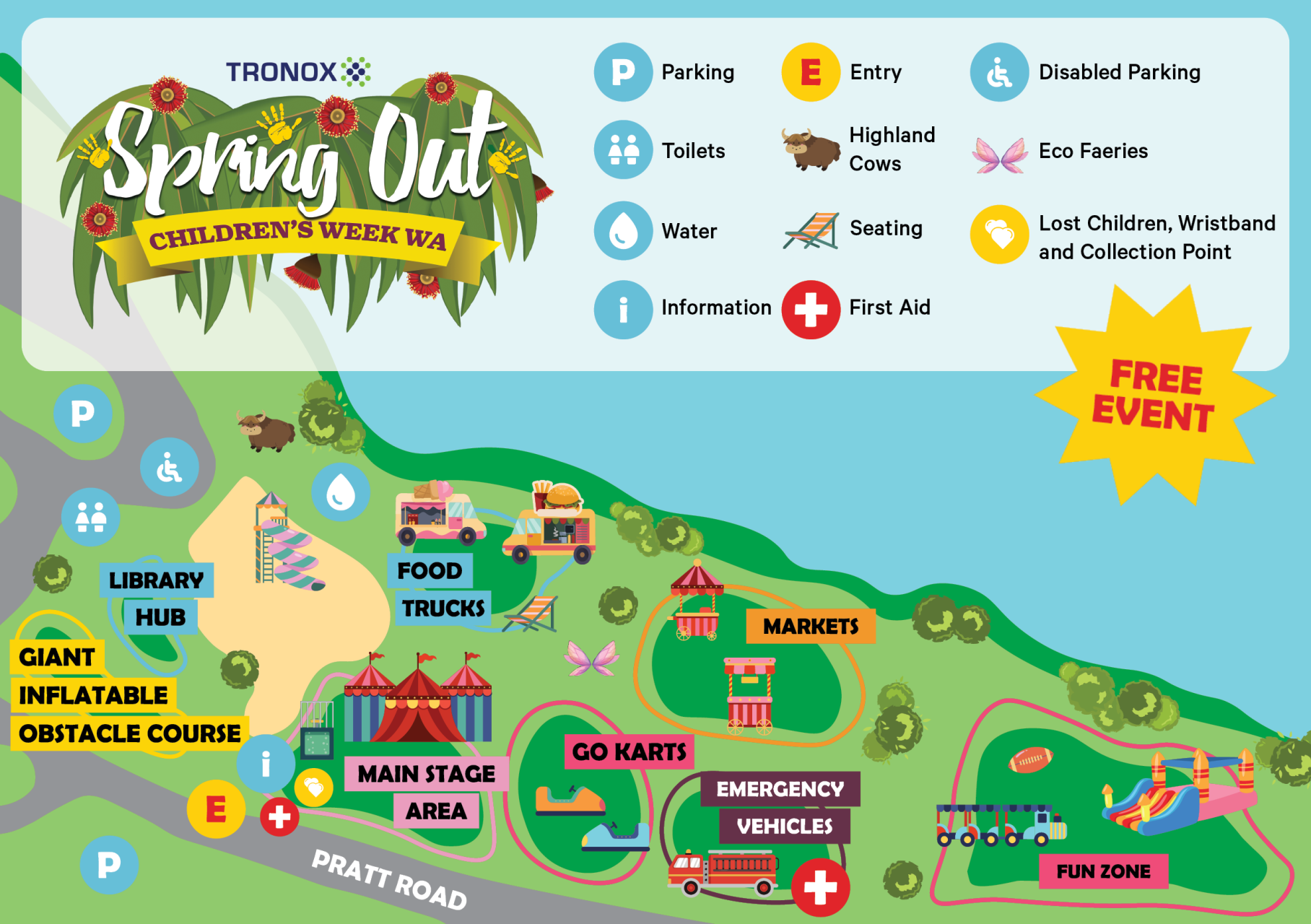 All activities, amusements and entertainment is completely FREE at Tronox Spring Out. There is no entry fee or bookings required. This FREE community event is provided by the Shire of Dardanup with support from Tronox to provide an affordable and fun day out for families.