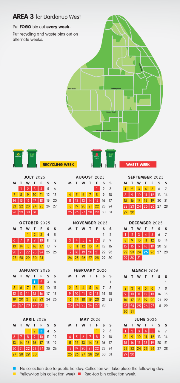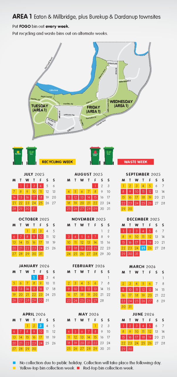 Alice Court, Archer View, Avon Gardens, Ballarat Court, Berkley View, Cadell View, Carbine Loop, Chamberlin Grove, Charnley Vista, Coen Close, Curtin Mews, De Grey Lane, Deakin Elbow, Dunham Link, Evolution Loop, Flinders Street, Gascoyne Circle, Greenough Place, Holroyd Gardens, Hotham Way, Hunter Circle, Illawarra Drive, Isaac Court, Isdell Gardens, Jardine Way, King Edward Way, La Trobe Street, Margaret Circle, Millbridge Boulevard (numbers 1-18), Monash Boulevard, Murchison Parade, Murdoch Crescent, Ord Close, Oswego Way, Resolve Crescent & Swan Avenue.