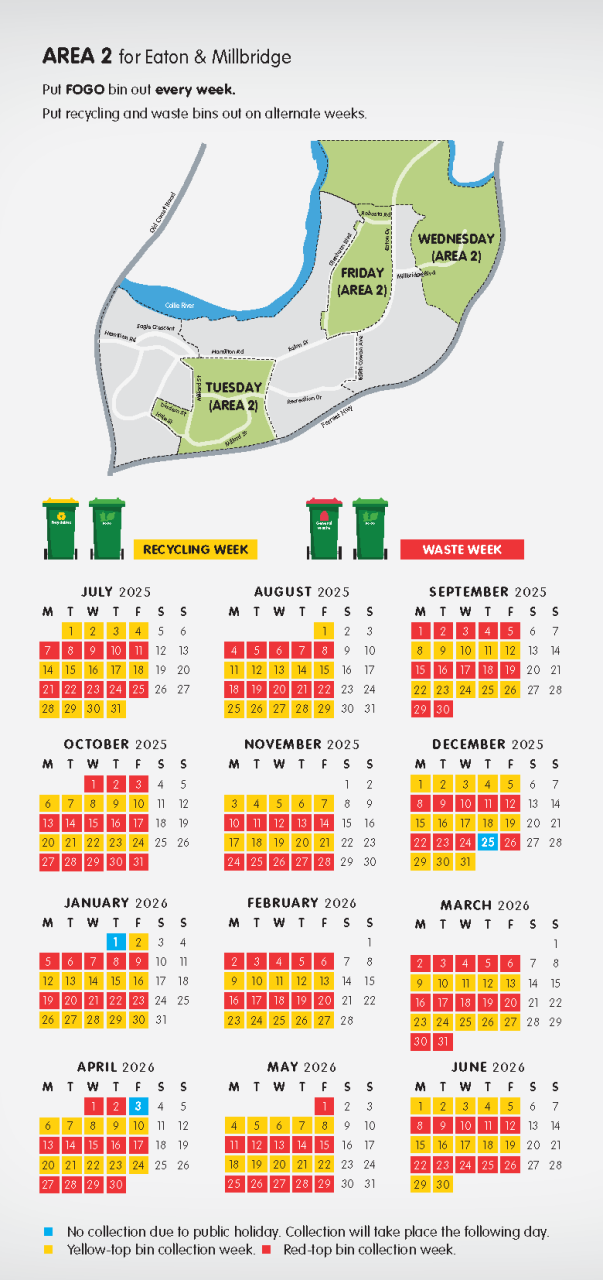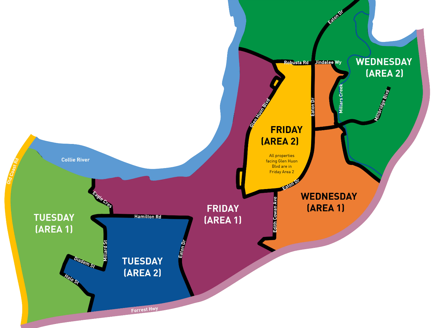 Albatross Crescent, Ann Street, Blue Wren Drive, Bobin Street, Brangus Place, Bryant Street, Butcherbird Court, Camfield Street, Cassowary Bend, Charolais Mews, Cormo Court, Cormorant Entrance, Council Drive, Cowin Gardens, Cudliss Street, Culling Grove, Dare Cove, Dove Cove, Eaton Drive (70-86), Emu Cove, Fantail Loop Finch Way, Frost Way, Gromark Gate, Hamilton Road (even numbers 68-120), Hands Street, Jersey Place, Karabair Close, Kelderman Elbow, Leake Street, Leicester Ramble, Lennard Street, Mustang Loop, Penninsula Lakes, Pigeon Court, Pratt Road (numbers 59+), Recreation Drive, Shepherd Retreat, Solomon Street, Stanton Street, Wagtail Brace & Watson Street