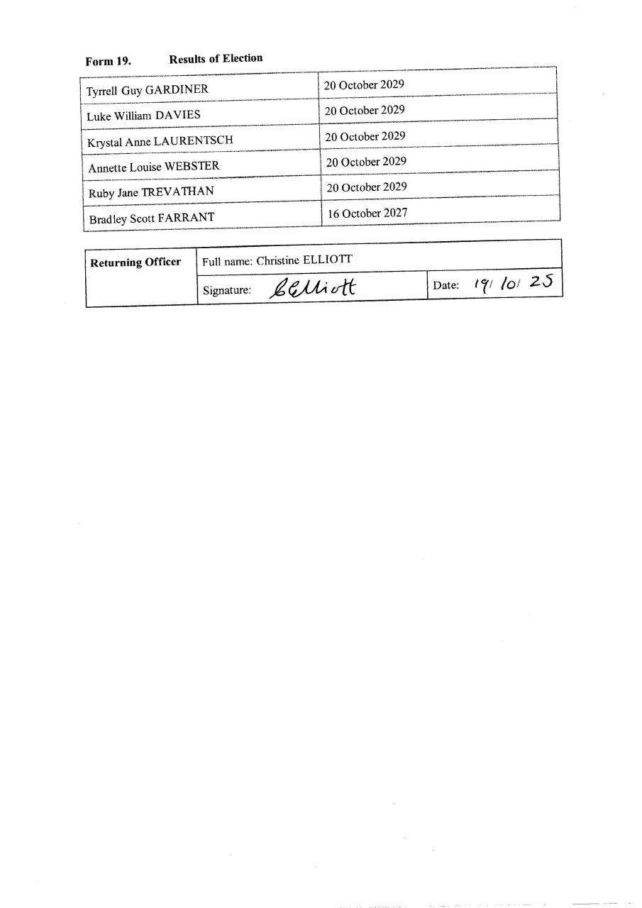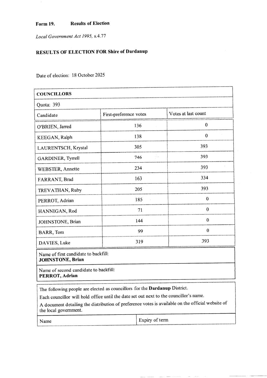 Shire of Dardanup declaration of election results